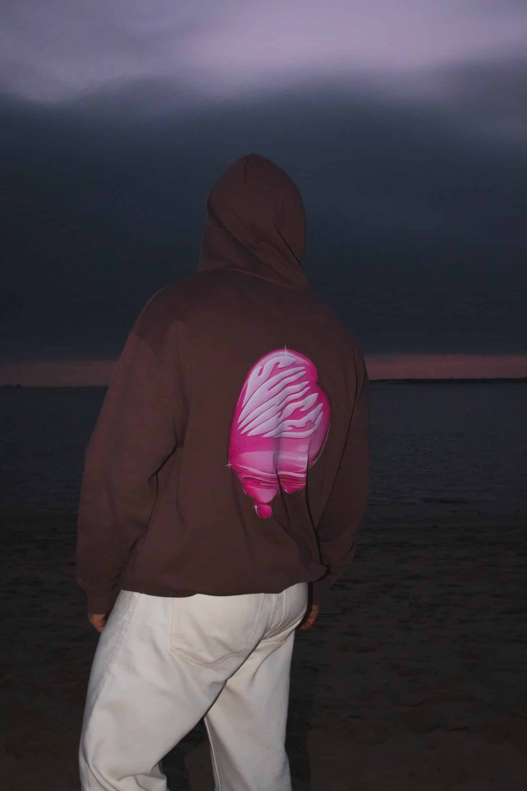 Ce sweat porte la mémoire d’un ciel en feu, d’un jour qui s’éteint lentement mais avec intensité.